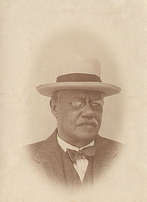 Muotokuva: Edvard Westermarck silmälasit ja hattu päässä, solmio kaulassa.