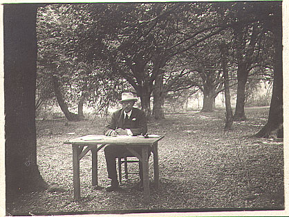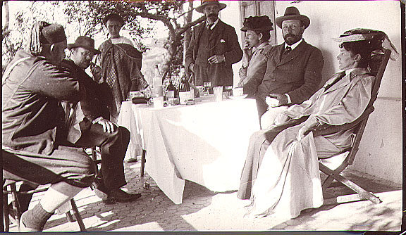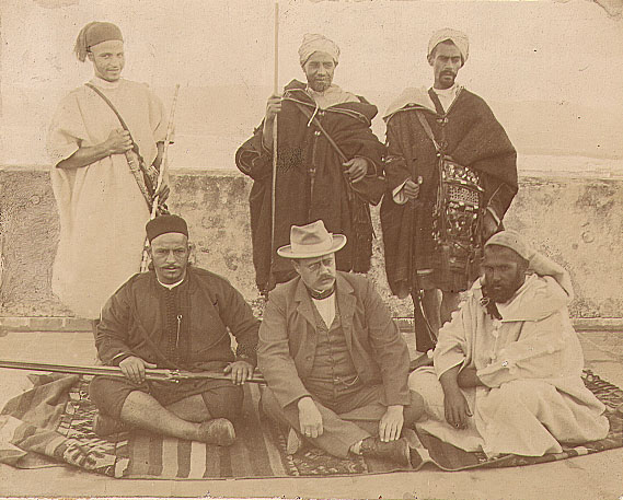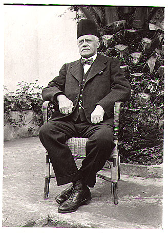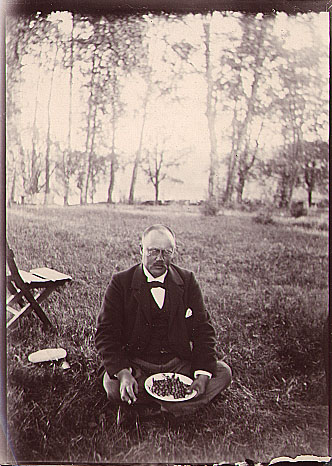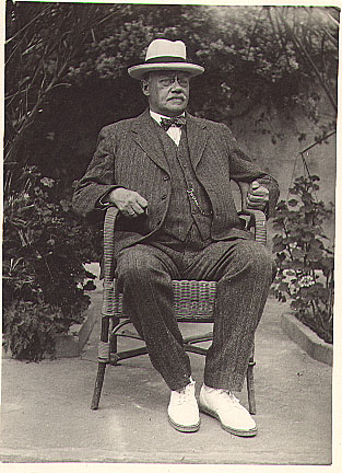 Miljöökuva: kokovartalokuva Edvard Westermarckista istumassa tuolissa huvilansa verannalla Tangerissa, Marokossa.