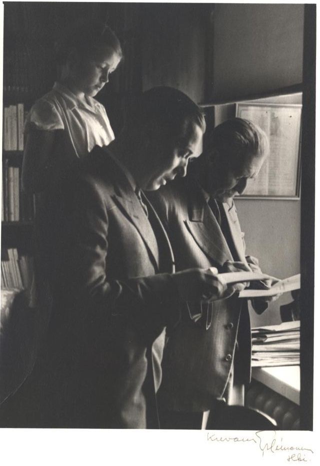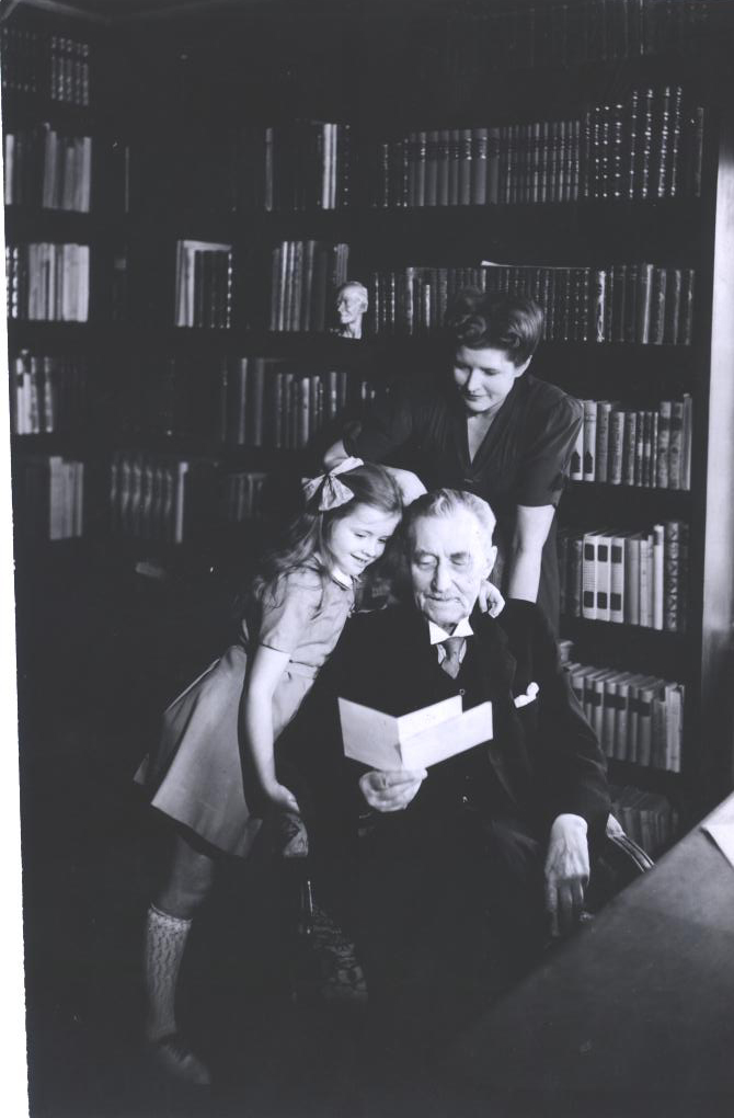 Rolf Lagerborg tyttärensä ja tyttärentyttärensä kanssa Runoilijatalossa Porvoossa 1945-46 (Rolf, Susanna ja Veronica).