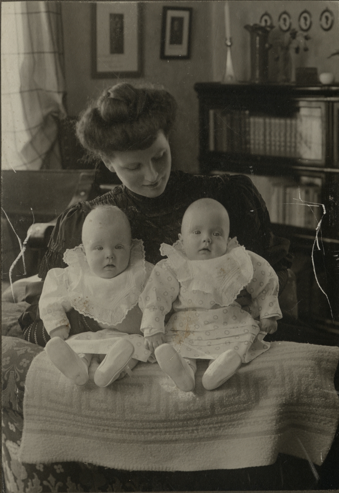 Rouva Elna Lagerborg (o.s. Selin) ja kaksoset Olof ja Robert 1907.