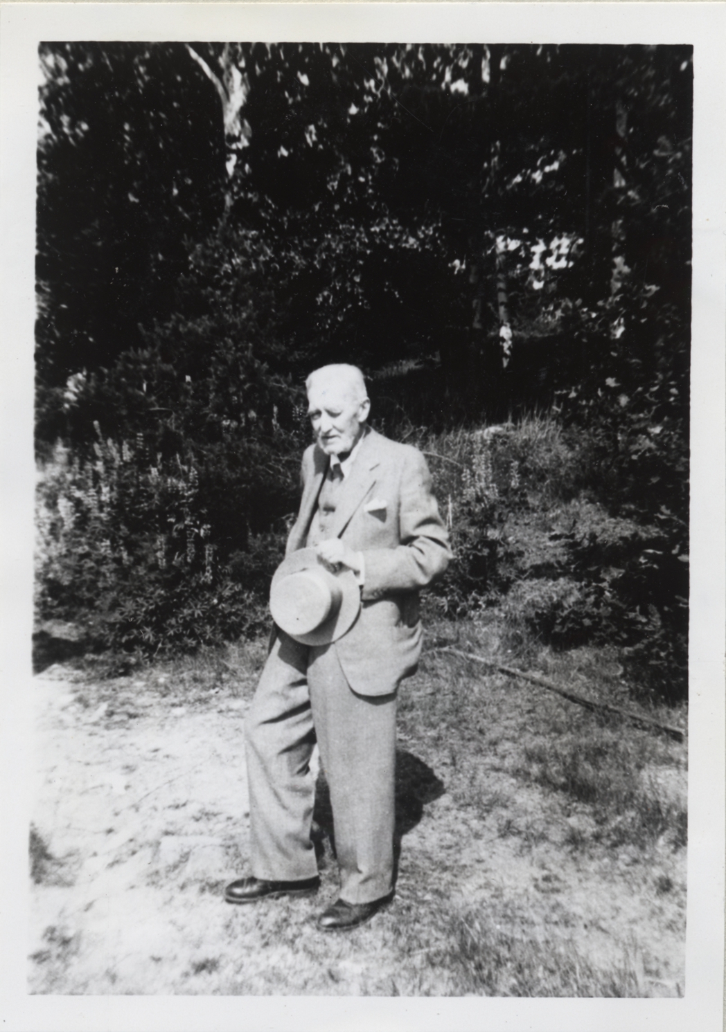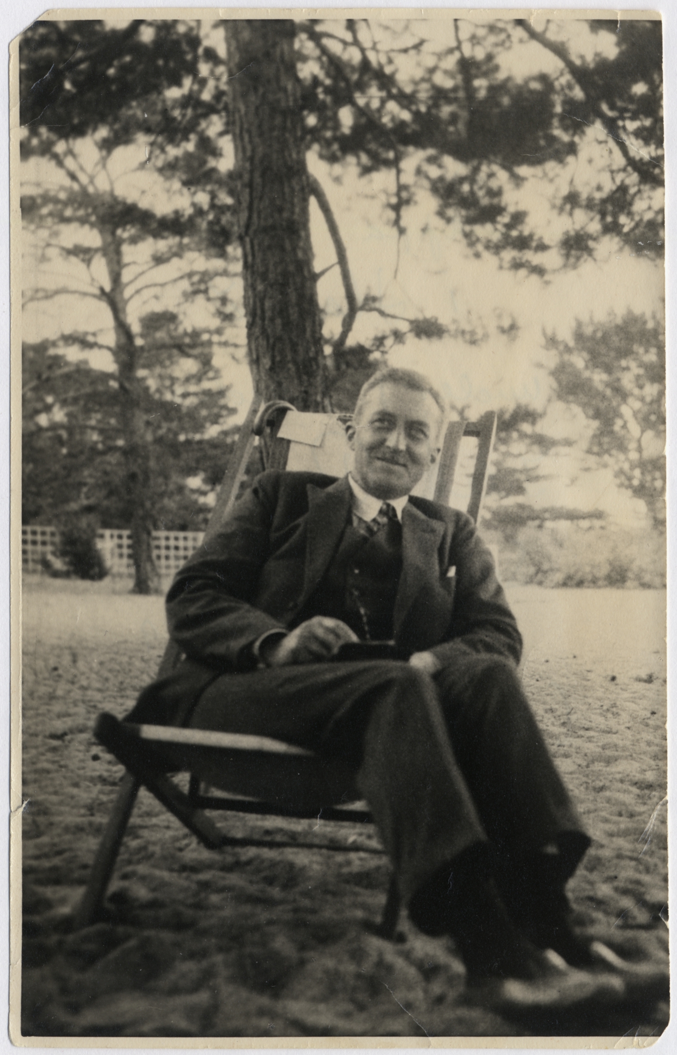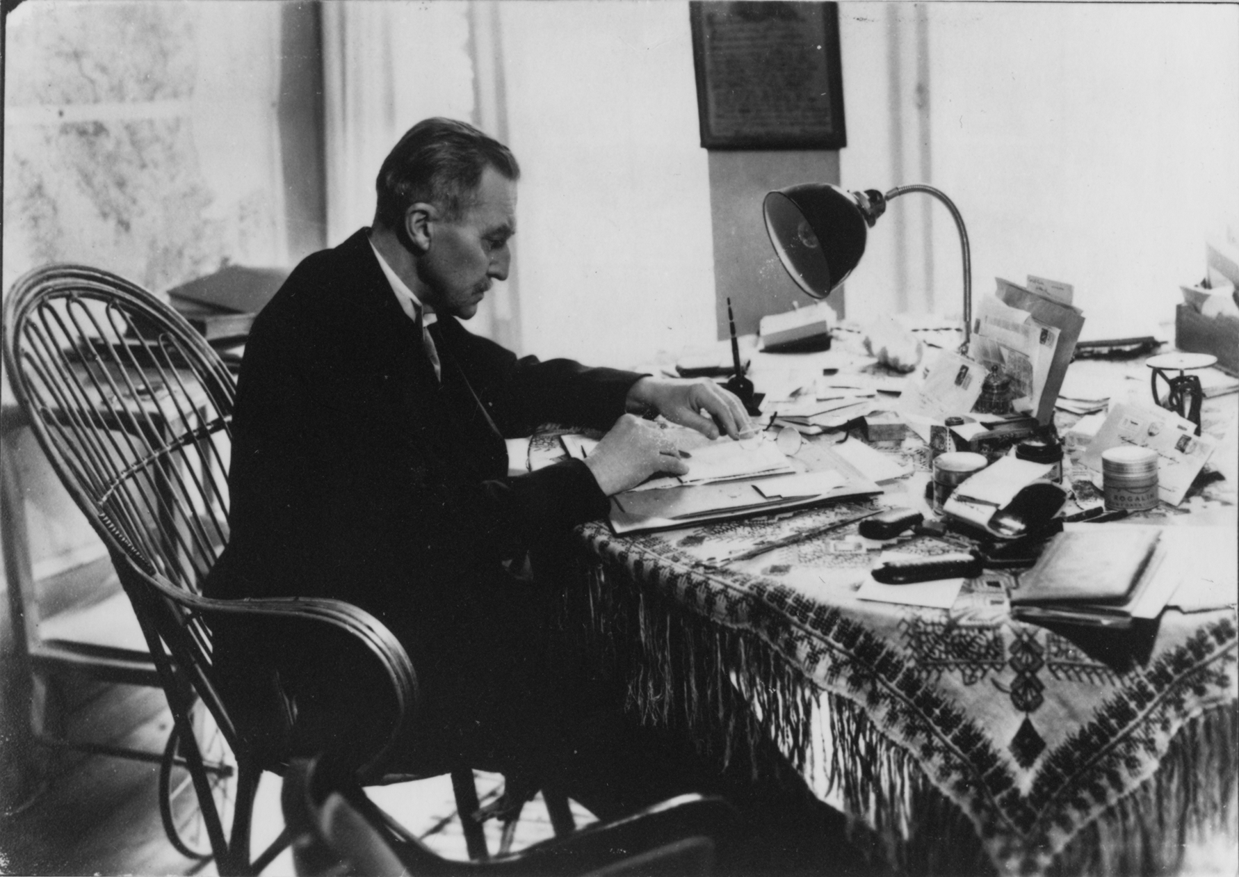 Rolf Lagerborg kirjoittamassa kirjeitä Runoilijatalossa, Porvoossa.
