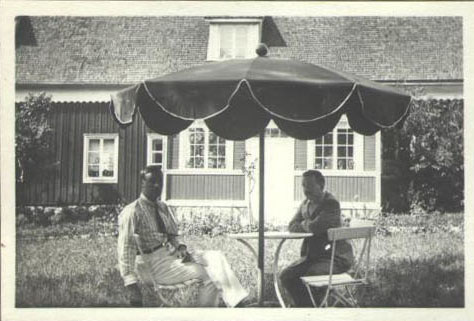 Päivänvarjon suojassa. Erik Ahlman ja opiskelutoveri V. A.